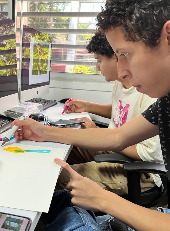 Esta propuesta se desarrolla de manera colaborativa entre el Semillero de Investigación en Innovación, Sostenibilidad y Tecnología y el Laboratorio de Arte y Tecnología del Instituto Departamental de Bellas Artes. El proceso es acompañado por los profesores Juan Manuel Henao, Eugenio Becerra y Andrés Cajigas, quienes articulan exploración gráfica, pensamiento tecnológico y creación visual. Junto a ellos participa un grupo interdisciplinar de estudiantes de los programas de Diseño Gráfico y Artes Plásticas, aportando ilustración, animación, serigrafía, documentación, experimentación sonora y activaciones en RA